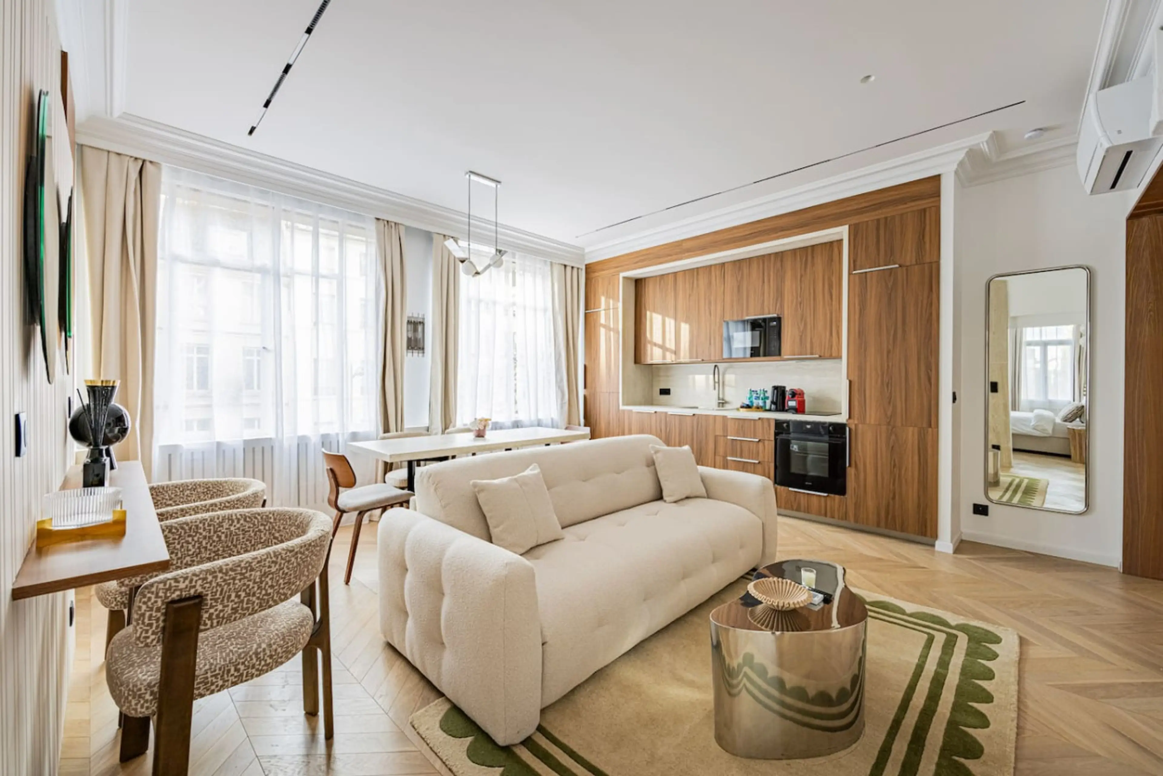 Positive: This property is amazing in every aspect. The location is perfect, very close to restaurants, shops, and cafés, everything you might need. Downstairs, there is a really nice café/brasserie with excellent coffee and a wide selection of French pastries, so you’re all set for breakfast. The apartment is very beautiful, modern, and full of light. The rooms are spacious, bright, and very comfortable. Each room has its own bathroom, which is a big plus. We had everything we needed in both the kitchen and the bathrooms, all new and very clean. The host was very responsive and helpful with any details we asked about. Check-in is very easy, done entirely with codes, no need to meet in person. 10/10 for everything. It was by far the most beautiful place we’ve stayed in Paris.